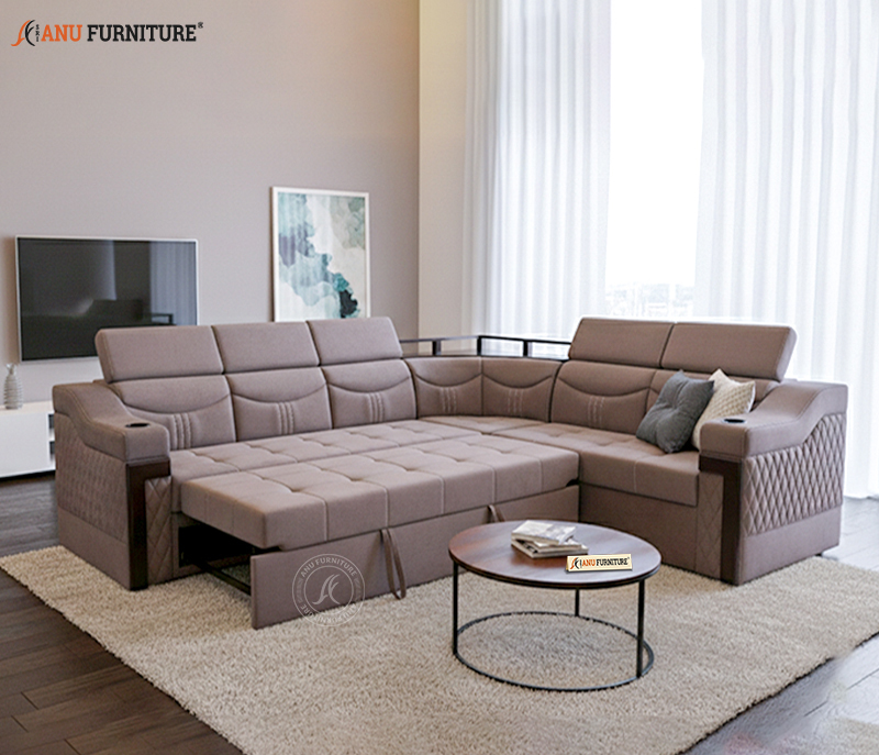 A versatile corner sofa cum bed upholstered in soft suede fabric, crafted with a strong pine timber frame for excellent durability. Designed with sturdy fibre legs, it easily converts from comfortable seating to a relaxing bed, making it ideal for balconies and compact living spaces.