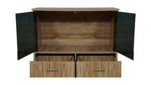 GLASS DOOR TV UNIT WITH TWO DRAW STORAGE