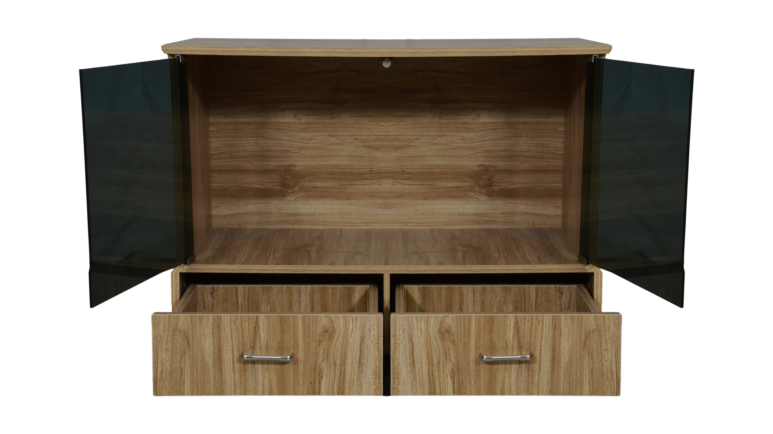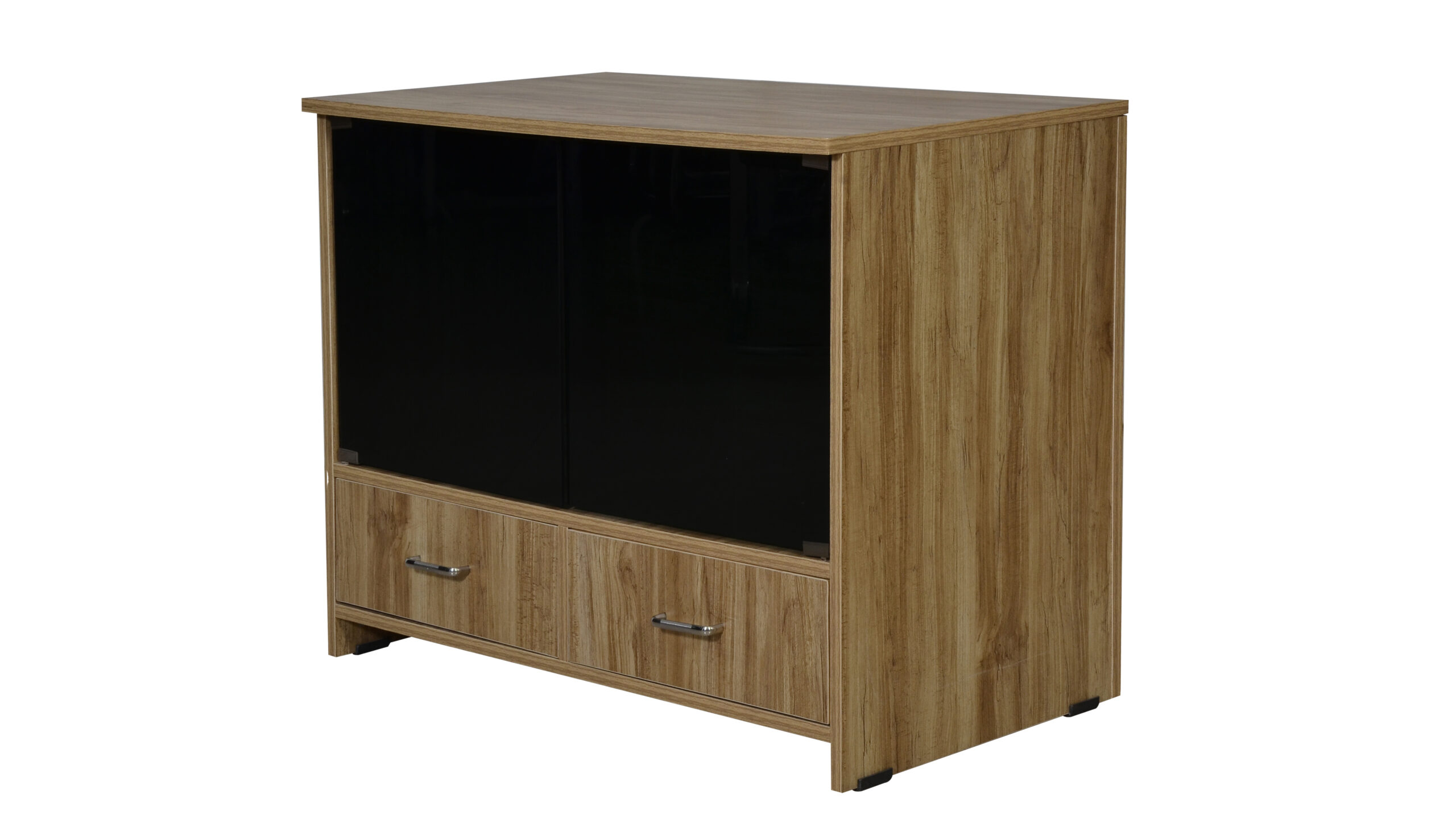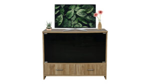 GLASS DOOR TV UNIT WITH TWO DRAWS