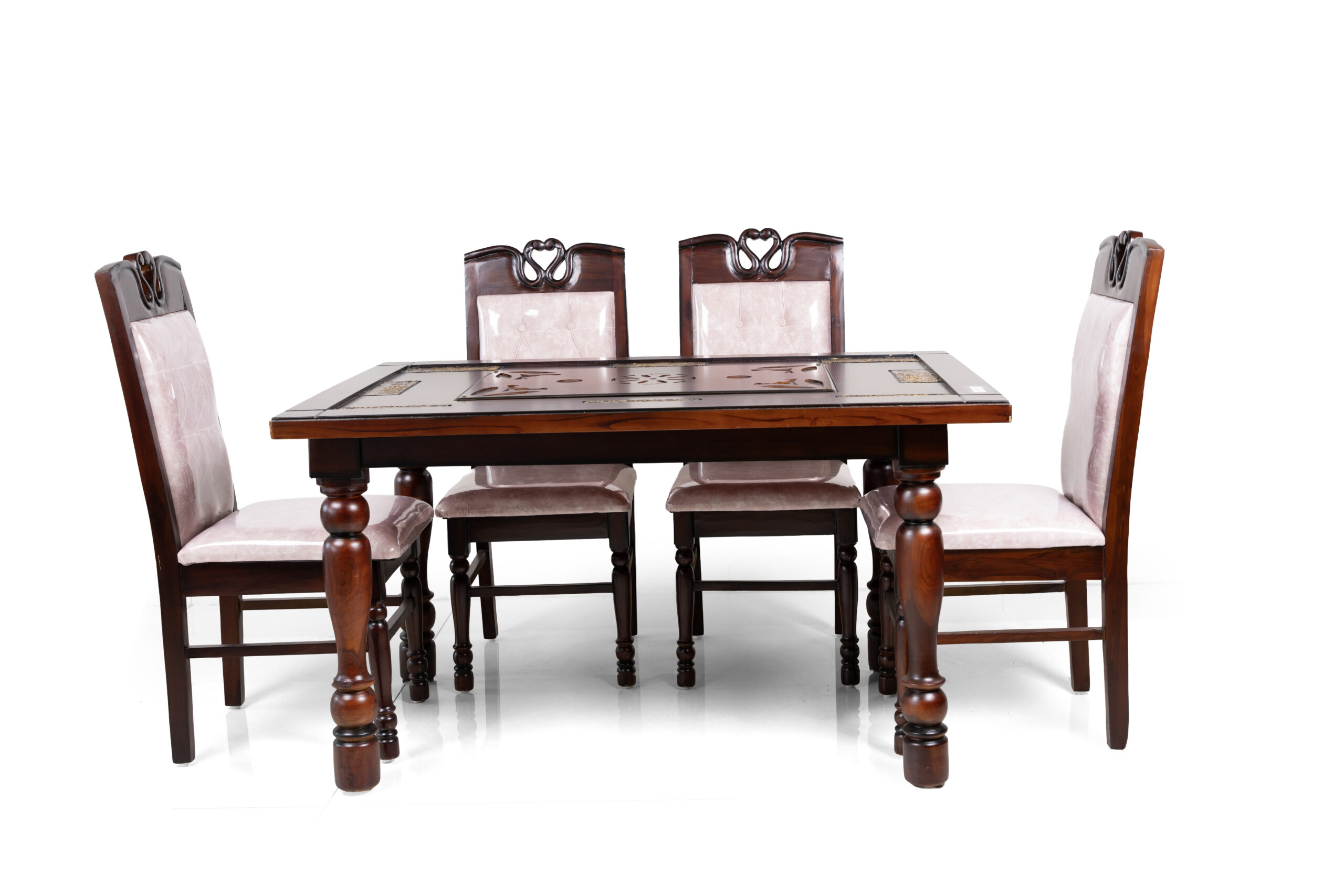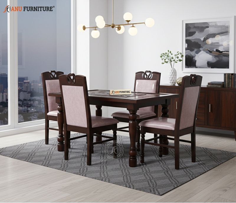 A charming 4-seater dining table crafted from premium teakwood, featuring a timeless design with sturdy construction. Perfect for compact dining spaces, offering durability, warmth, and everyday comfort.