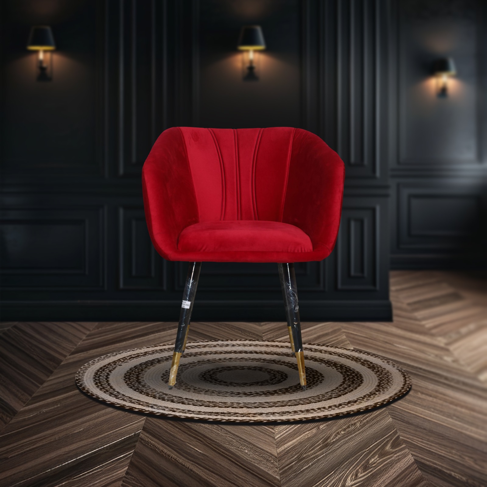 LOUNGE CHAIR WITH RED VELVET FABRIC