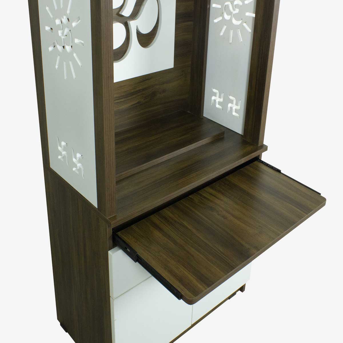 OPEN POOJA MANDIR WITH TWO DRAWS AND STORAGE